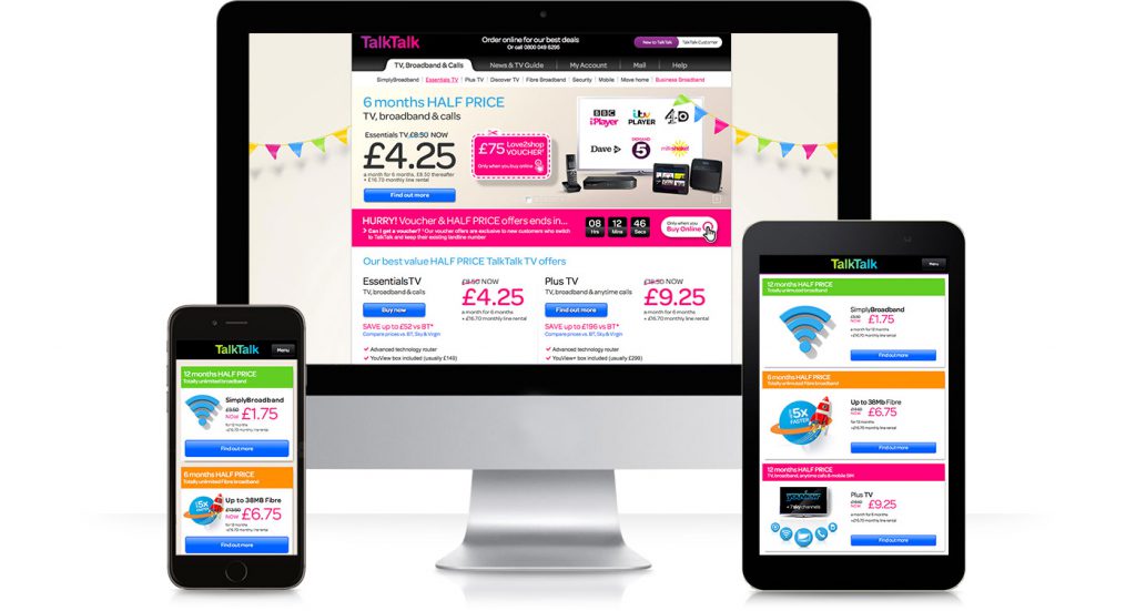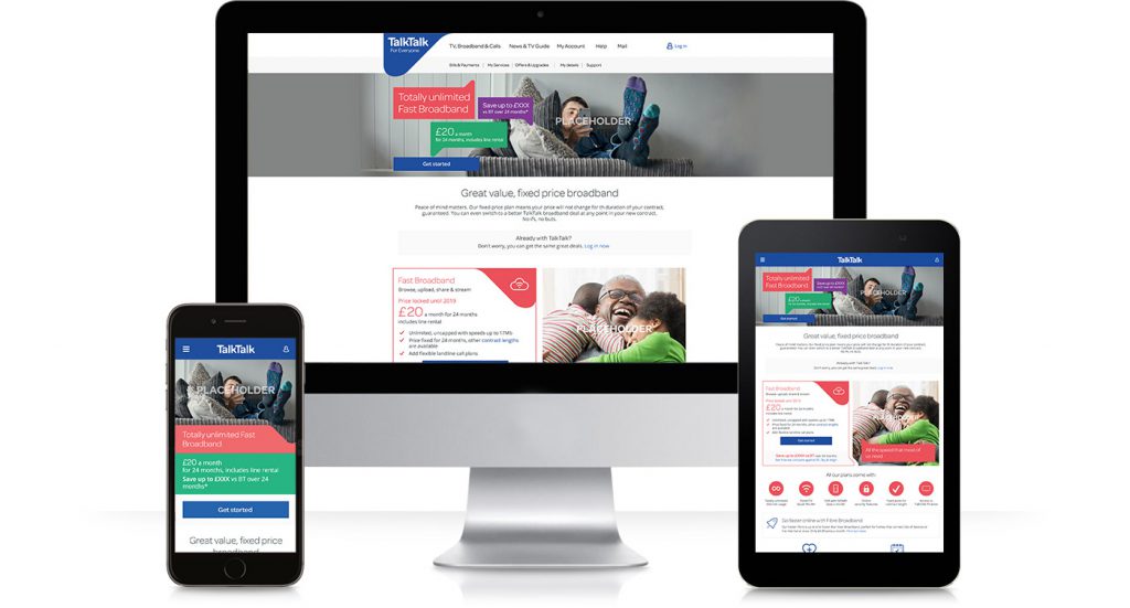 In 2016 TalkTalk had a 3D brand with seperate desktop, tablet and mobile websites. The task was to implement a new flat visual identity online for a new responsive platform whilst also aligning to a new business proposition in the way TalkTalk sell their products, called Fixed Price Plans.
